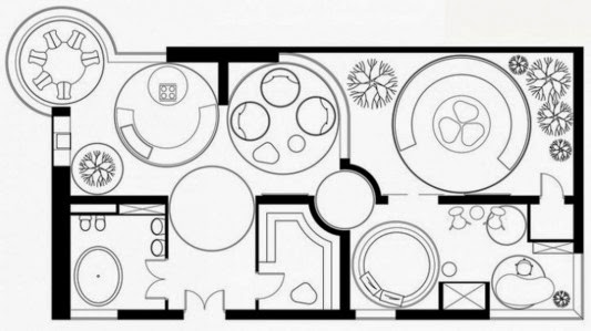 . Di bawah ini adalah desain rumah akhir pekan desain kamar dengan pembagian pipa bulat.